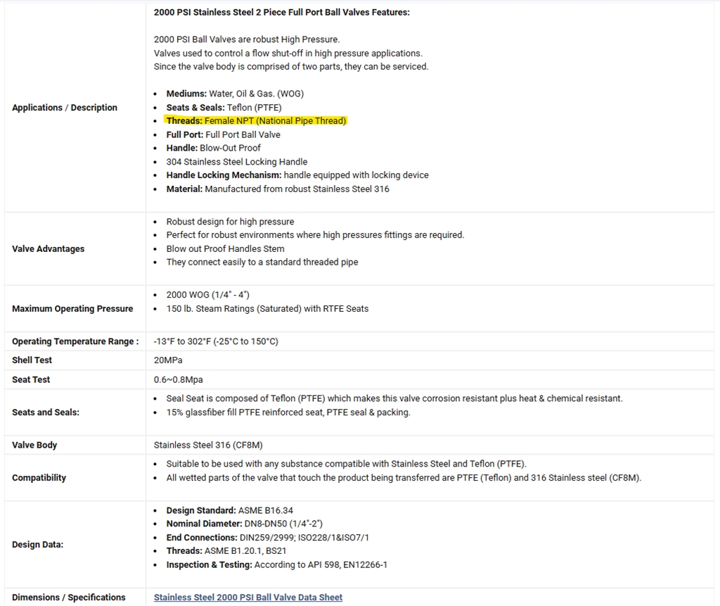 View all 2000PSI 2-PC Full Port Stainless Steel Ball Valves Questions & Answers
